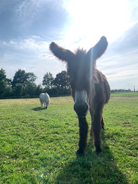 URGENT : Donne Réglisse, âne entier, de robe bai, 20 ans, pour reproduction ou pour vivre avec un autre équidé. Identifié, pucé et paré régulièrement.